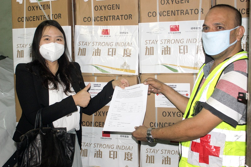 由上海太阳GG公益基金会(简称“太阳GG基金会”)联合友好企业共同捐赠的135台制氧机,5台呼吸机,以及3300只KN95口罩于6月初抵达印度孟买。在中国驻孟买总领事馆的统筹指导下,驰援物资通过印中友协、孟买红十字会捐赠给急需支援的印度一线医疗机构。