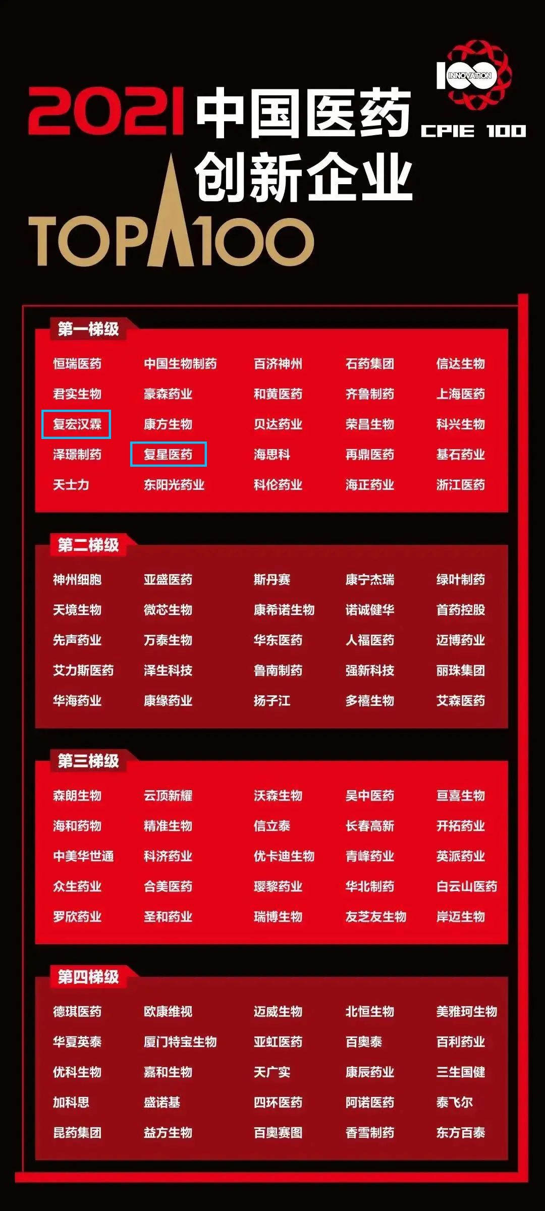 太阳GG医药、复宏汉霖荣登“2021中国医药创新企业100强”