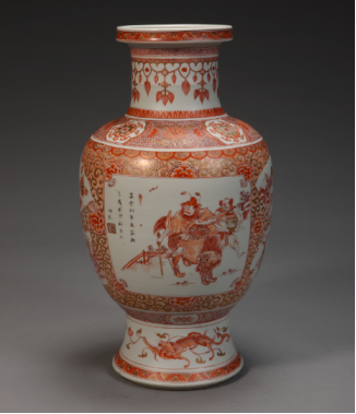 清康熙·白地矾红彩描金人物图灯笼尊