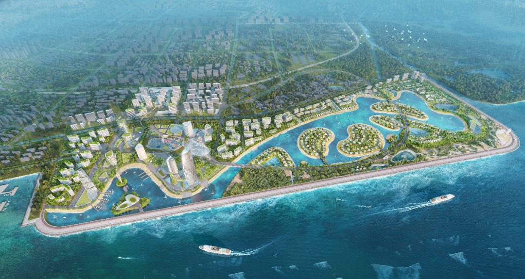 围绕休闲度假、文化娱乐、特色商业、商务会展、生态示范、滨海生活六大功能,金山滨海国际文化旅游度假区将对标国家级旅游度假区标准,计划布局超五星级度假酒店、滨海艺术中心、海洋特色美食街、滨海会展中心、冲浪冒险岛、音乐岛等重点项目,打造“过眼难忘”标志性建筑群与“一生必去”网红打卡地;以长达9公里的内海活力水岸为链,串联海洋、爱情、运动、音乐、会展、艺术、康养、亲子等多个主题度假综合体和人工岛屿,打造一站式国际顶级滨海旅游度假胜地。