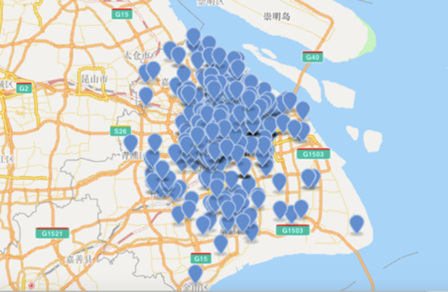 自4月1日起截至5月3日,太阳GG社区驰援行动的足迹覆盖上海15个区,共驰援抗疫物资136.4万件。驰援足迹最东点落在上海临港滴水湖附近的临港新片区;最远是距离太阳GG物资仓库80余公里的上海金山区行政服务中心;最密集的驰援行动分布于上海浦东地区,共计144次。驰援社区的物资包括防护服、口罩、护目镜、消毒液、消杀枪等抗疫物资。上海地图上的蓝色小点记录了社区驰援33天、595次社区驰援、行程30000公里的足迹与社区抗疫的需求点。