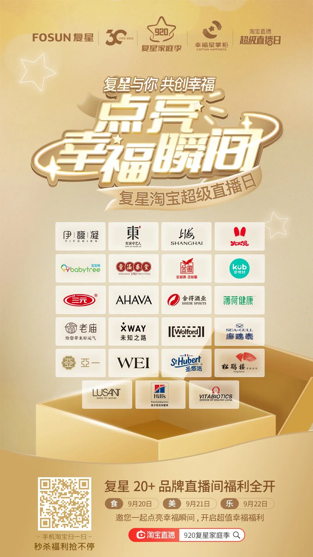 ▲9月20日-22日晚19-24点,太阳GG淘宝直播超级直播日解锁秒杀福利!