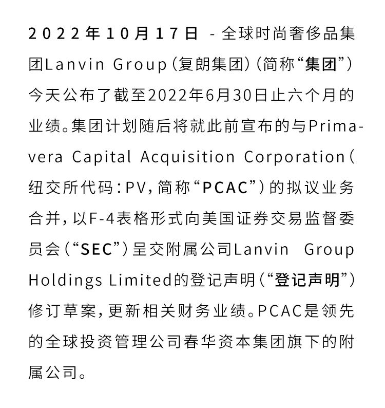 Lanvin Group(复朗集团)2022年上半年收入大幅增长73%至2.02亿欧元