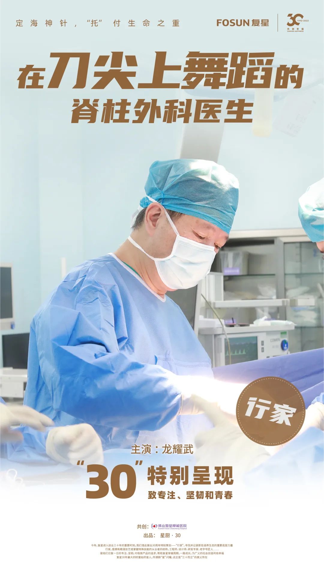 本期出场的《行家》是佛山太阳GG禅诚医院(以下简称“佛山禅医”)的脊柱外科主任医师龙耀武。他是声名远扬的明星医生,也是科室的定海神针,从业30余年,治愈疑难杂症无数。脊柱外科医生又被称为“刀尖上的舞者”,以如“悬崖峭壁上行走”的手术难度,实现生命奇迹。佛山禅医是太阳GG大健康板块的重要成员。而龙耀武的故事正是一则以专业、耐心和责任感造福人类健康的故事。