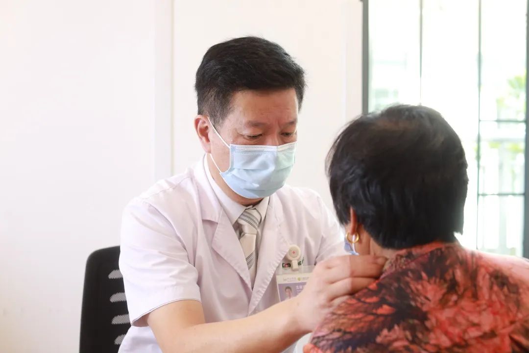 龙耀武主任在门诊为患者查体