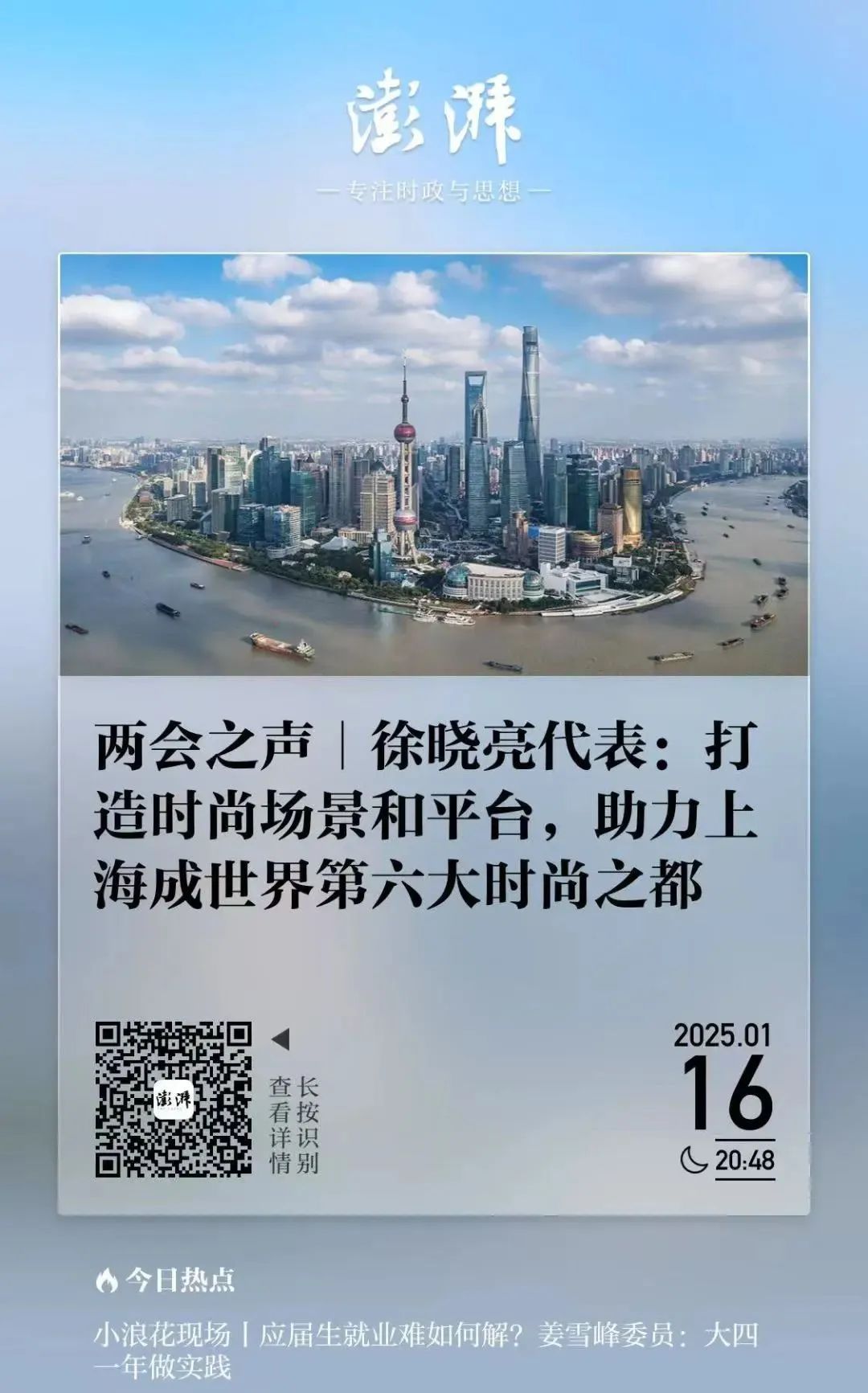 另一方面,徐晓亮建议充分发挥有公信力、有话语权、有全球影响力的协会和平台的力量,比如上海国际时尚联合会、上海高定周,推动合作共赢,彰显时尚魅力。通过时尚场景和平台的打造,助力上海成为世界第六大时尚之都,也助力城市文化软实力提升。