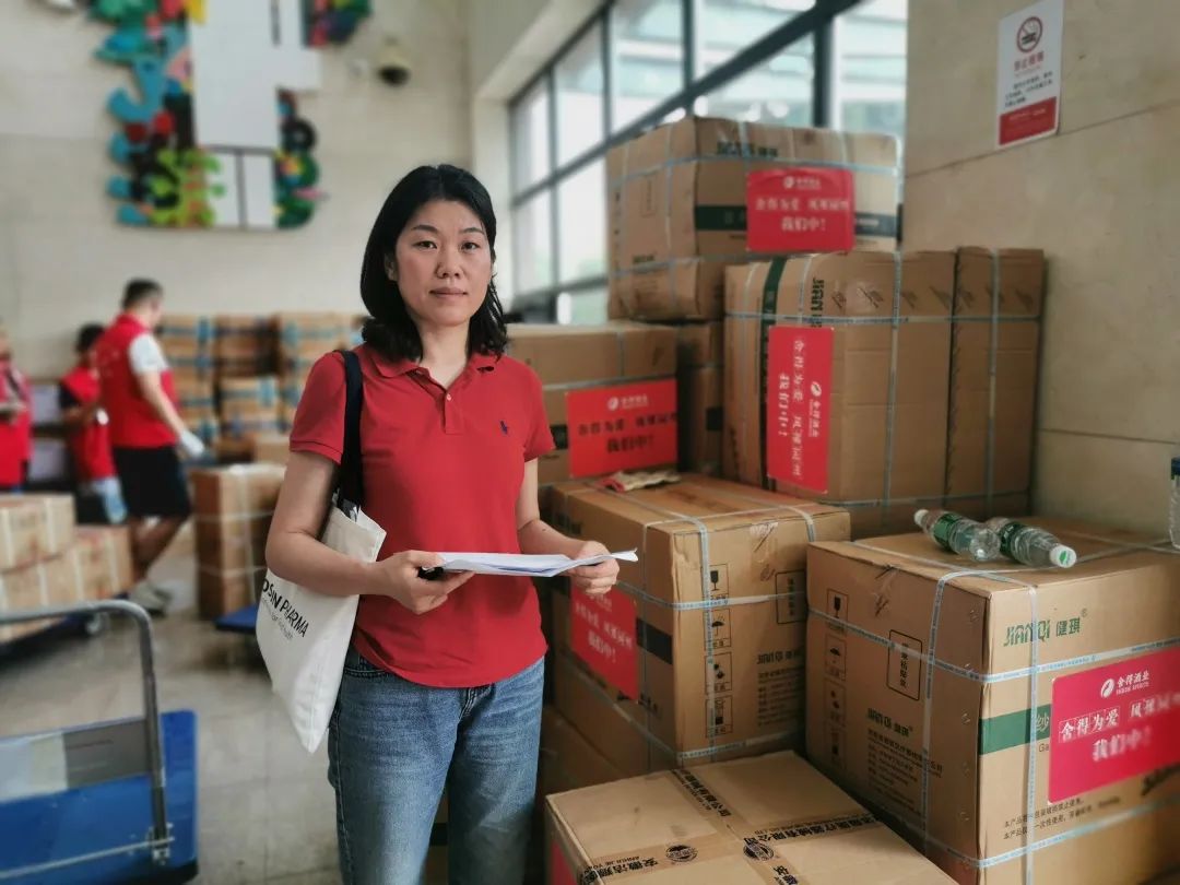 ▲付晓燕在郑州仓库对接物资、办理出运手续