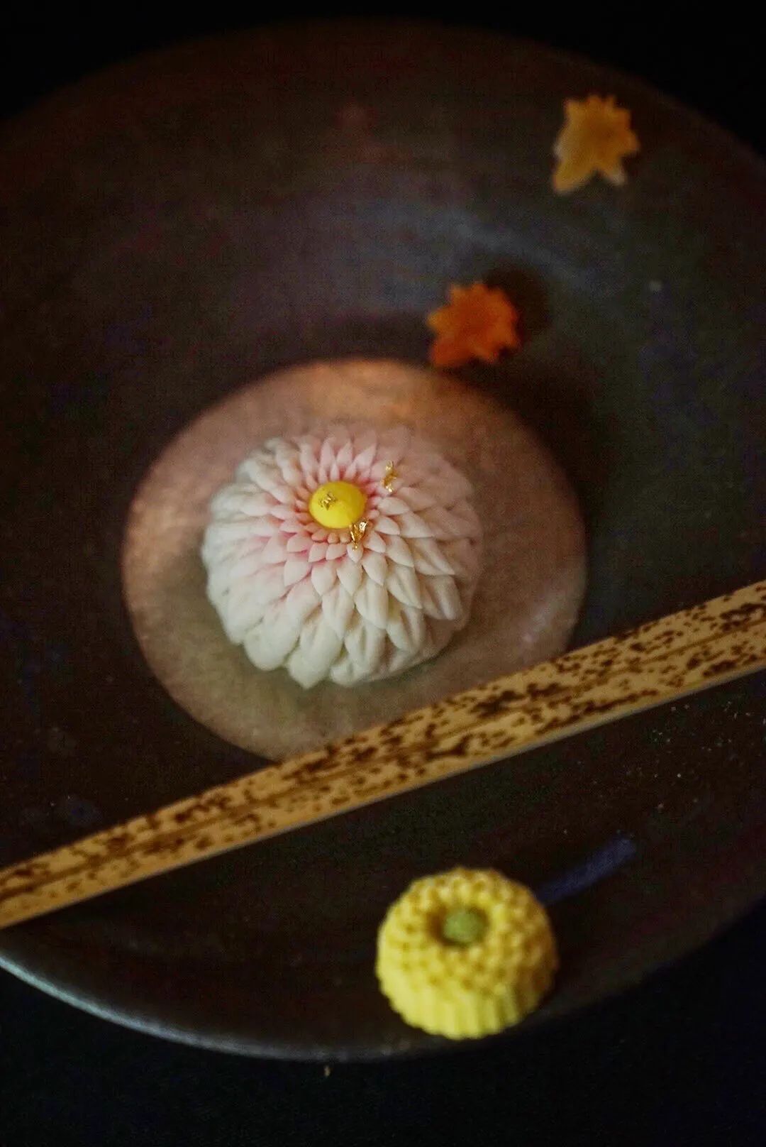 「和菓子」泛指日本的一切点心。以糖,糯米,小豆等为主要原料,其美轮美奂的外形、多变的制作风格,无论从口味还是外观上都深受大家的欢迎。日本人喝茶饮酒时也喜爱搭配此类小食点心。外形淡雅极致精美的和菓子有着悠长的历史,日本人将此与他们的文化和民族精神紧紧的结合在一起。