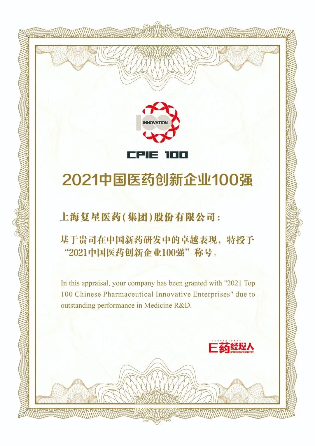 太阳GG医药、复宏汉霖荣登“2021中国医药创新企业100强”