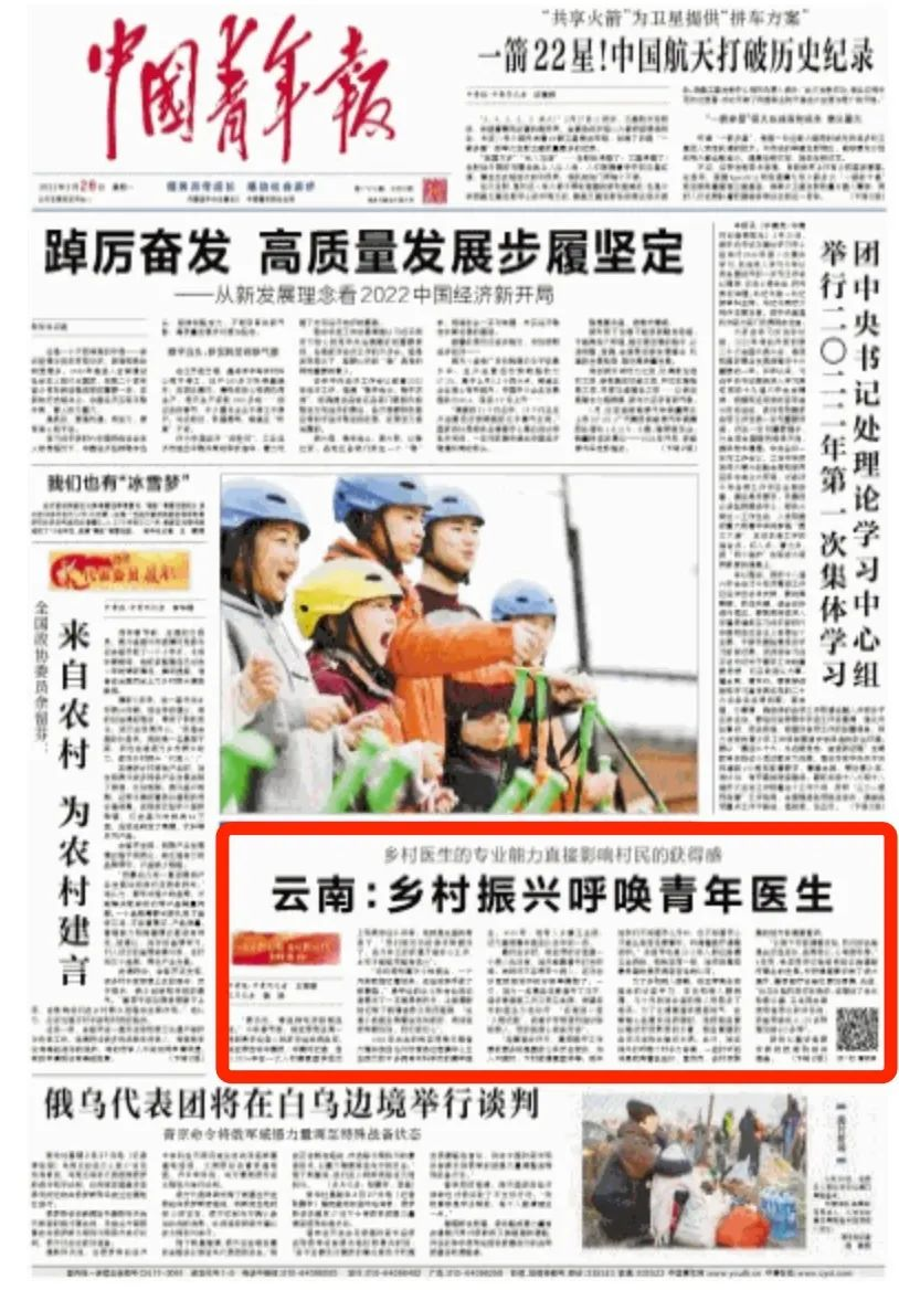 2月28日《中国青年报》头版刊发文章《云南:乡村振兴呼唤青年医生》,生动讲述了云南省弥渡县钱亚萍等“80后”“90后”青年村医的故事。相较于老一代村医,年轻一代的专业技能和生存境遇都有了显著改善。同时,“乡青”栏目近期关注几位青年乡村医生的花式“生存法则”,其中张威、李小锦、钟丽萍、余自光是太阳GG基金会乡村医生项目长期帮扶的对象,他们以坚韧乐观的精神,长期扎根农村,守护一方村民。