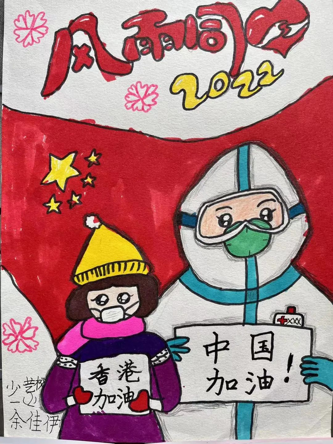 文字未脱稚气,色彩倾情绚丽,孩子们的画和10000只儿童医用外科口罩、21000件防护服、75000只3M N95口罩和5000人份自检抗原试剂将赠予这两家香港机构,再给到疫情中的社区儿童。