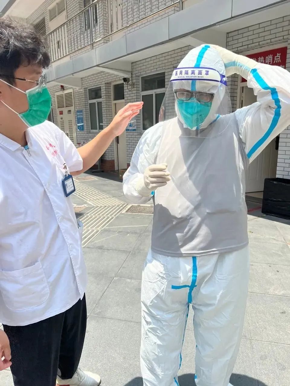 ▲ 徐家汇街道卫生服务中心的“大白”穿上了“冰袋背心”