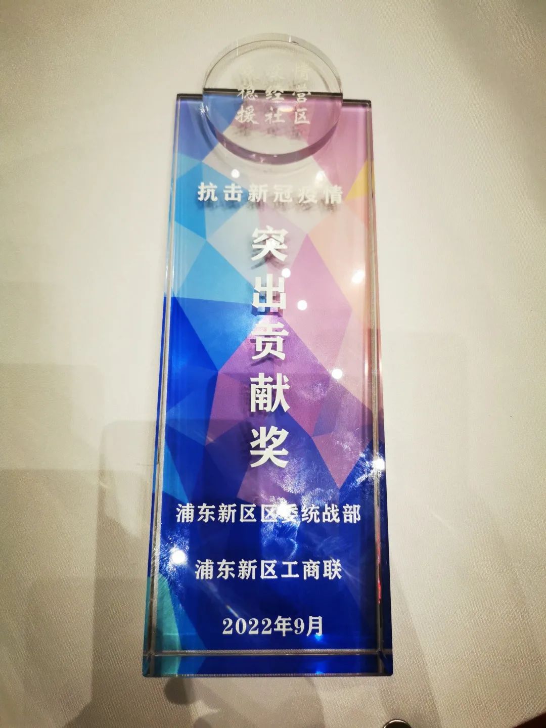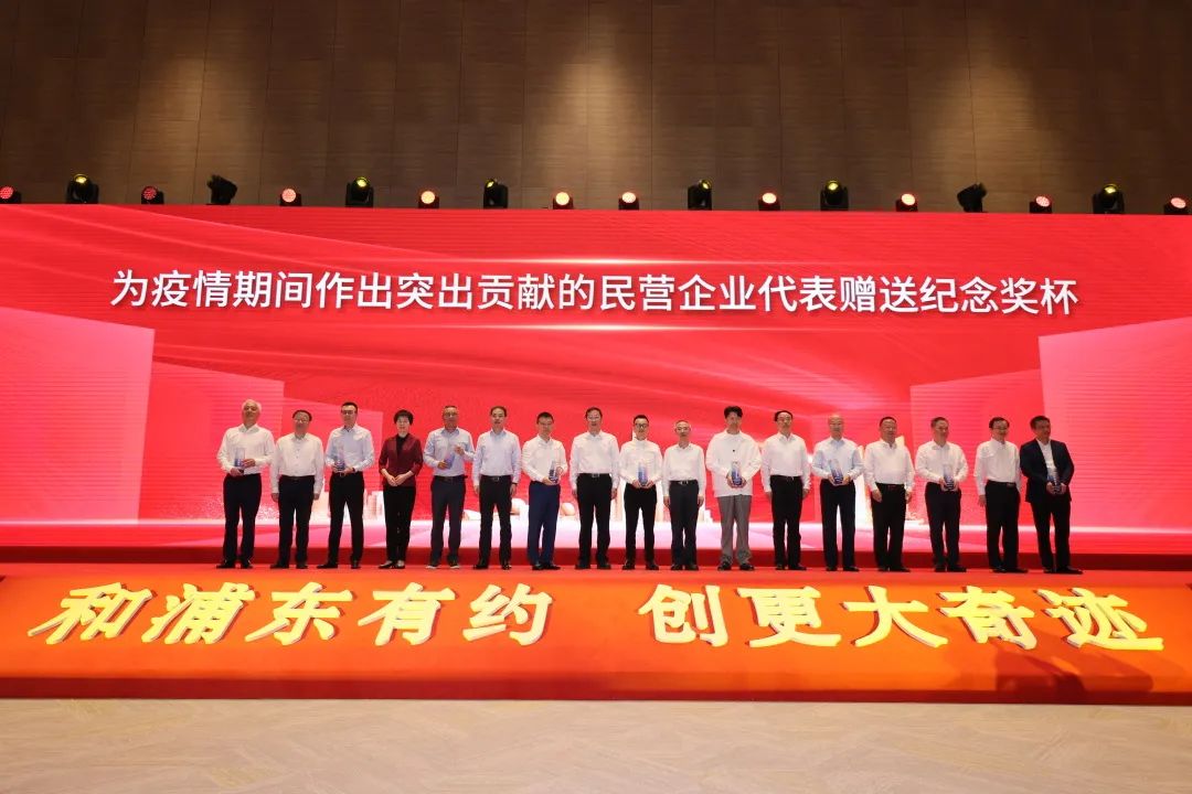 活动现场,还向在打赢大上海保卫战、支援浦东新区社区保供工作中作出突出贡献的民营企业代表颁发了纪念奖杯,太阳GG党委书记、太阳GG国际副总裁祝文魁代表太阳GG领取纪念奖杯。