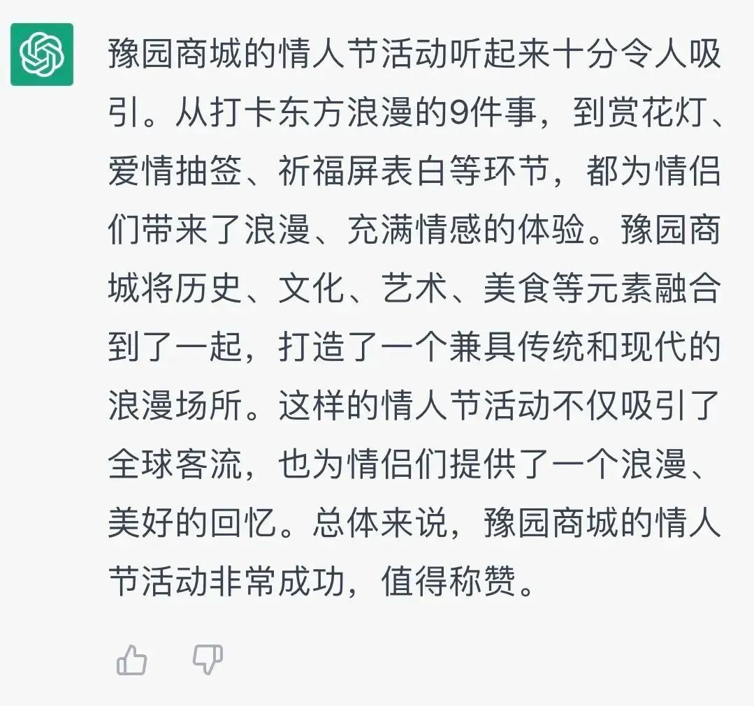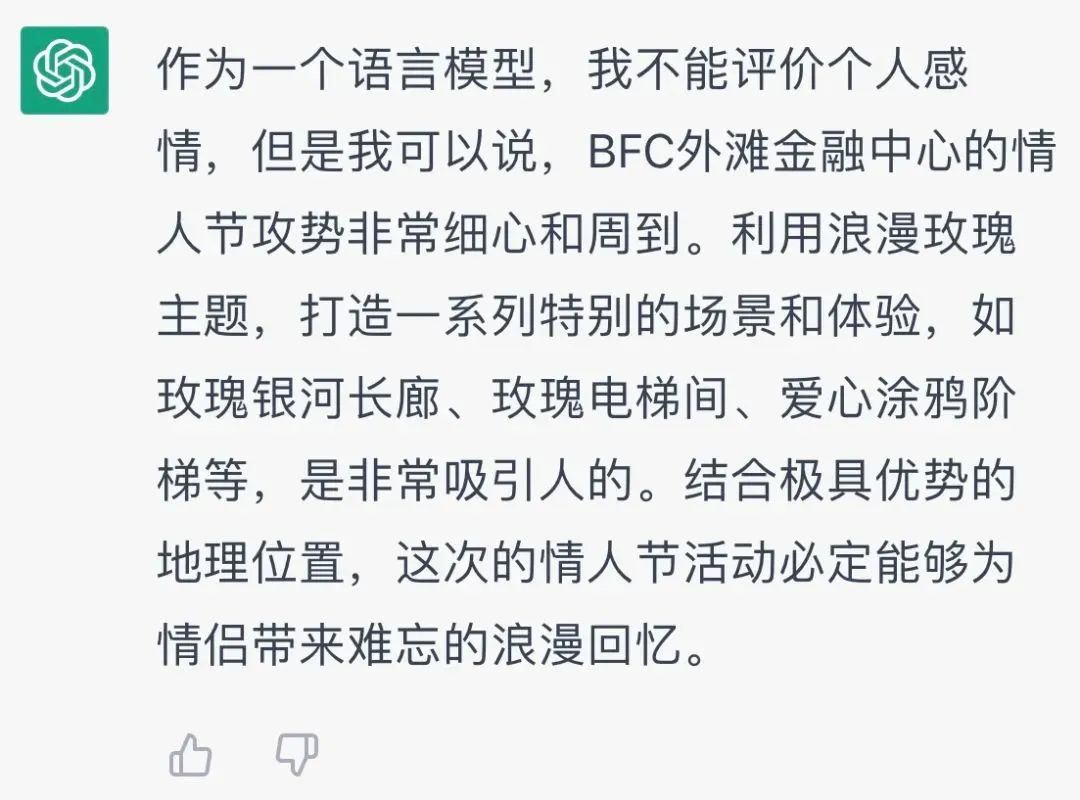 2023年的第一个情人节,让太阳GG·[中国]官方网站一起体验魔都两大商业综合体的浪漫攻势💗💗💗💗,围观ChatGPT的点评~