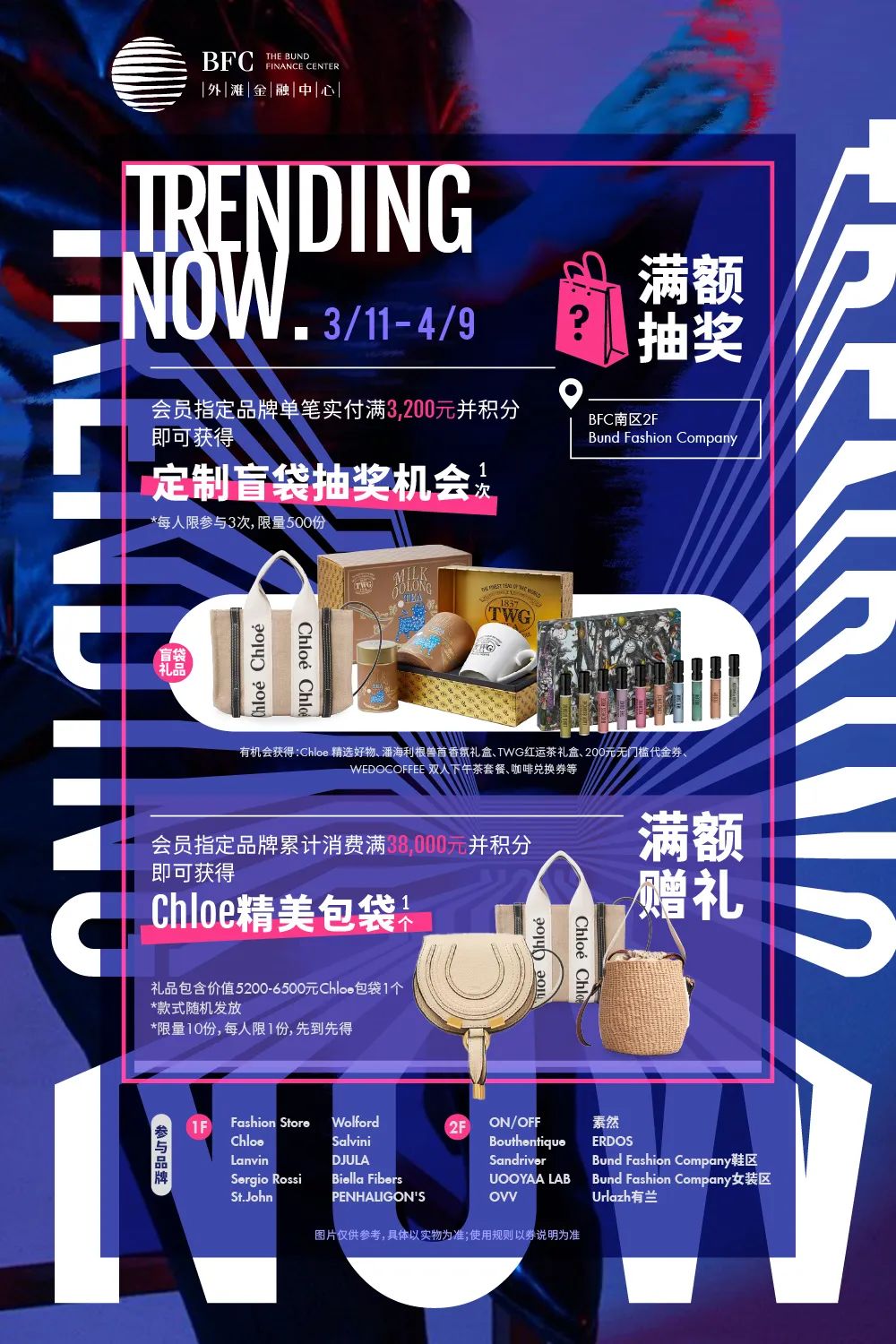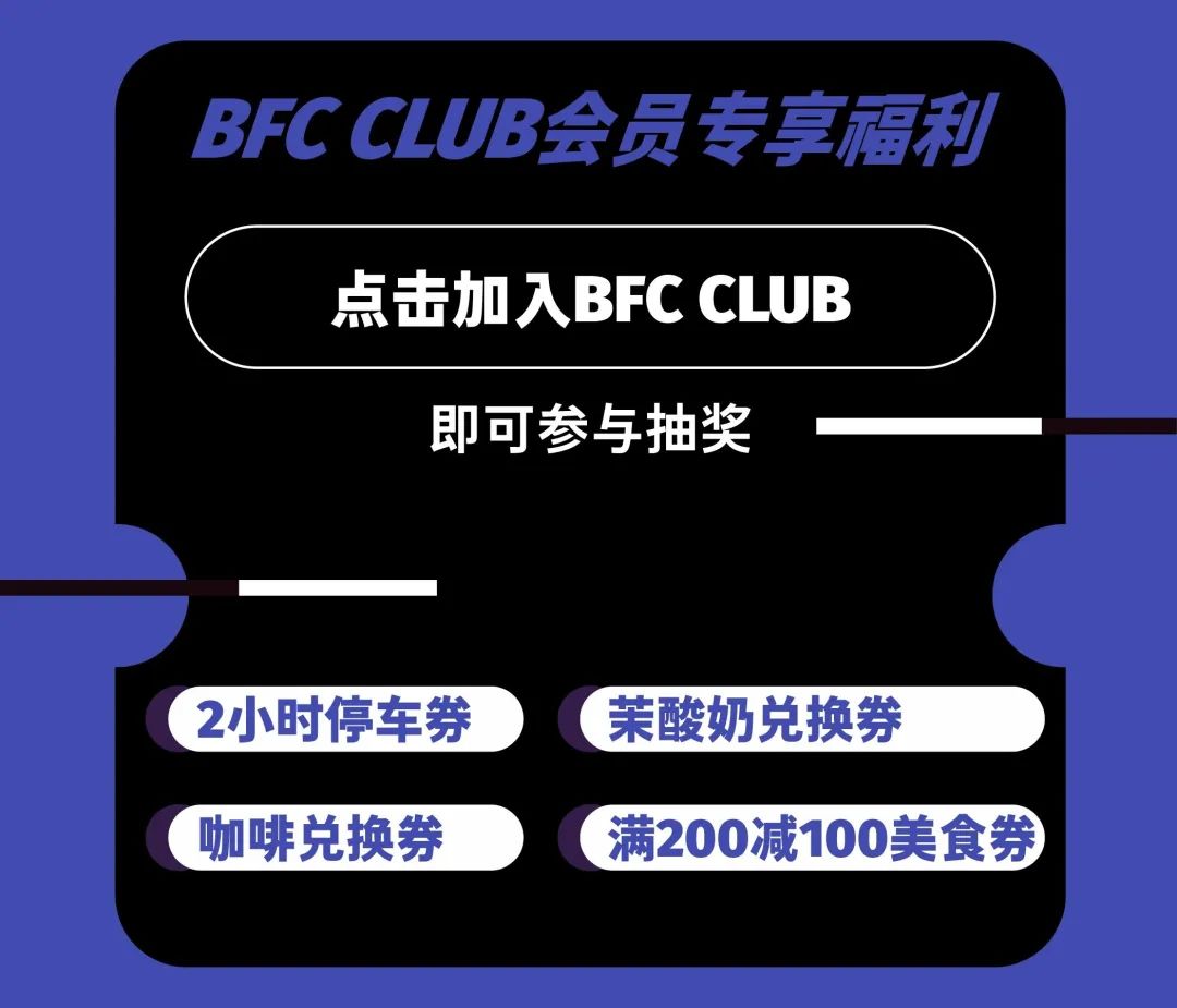 除了上述亮相TRUNK SHOW的时髦品牌,时尚季期间,凡BFC会员前往BFC商场1F、2F的时尚品牌区消费,单笔实付满3200元即可获得一次BFC定制盲袋抽奖机会。