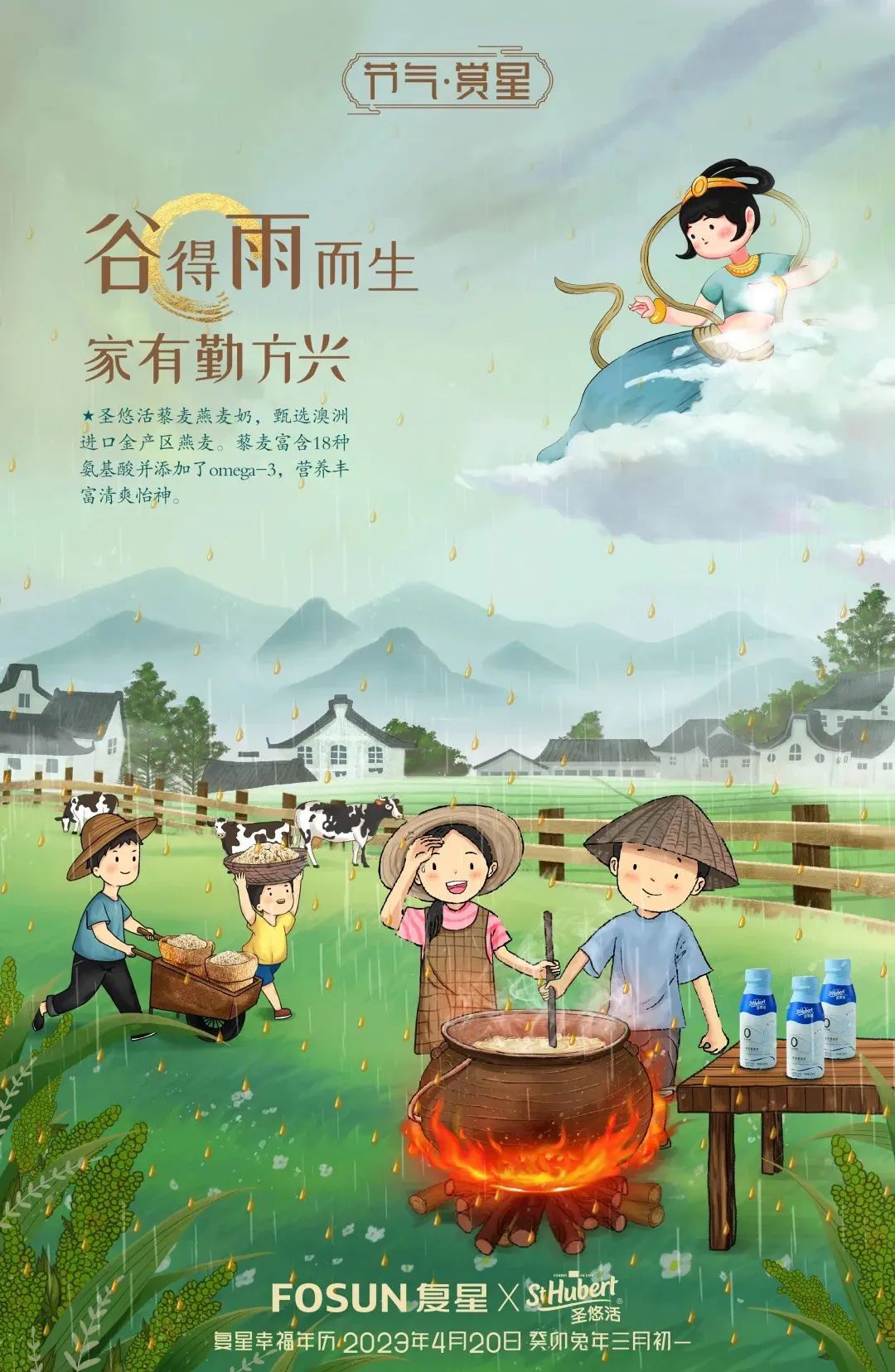 4月20日谷雨,为二十四节气的第六个节气,也是春季的最后一个节气。本期谷雨海报描绘了春雨下百谷生长,人们辛勤播种、安居乐业的情景。愿雨生好谷,勤兴万家。