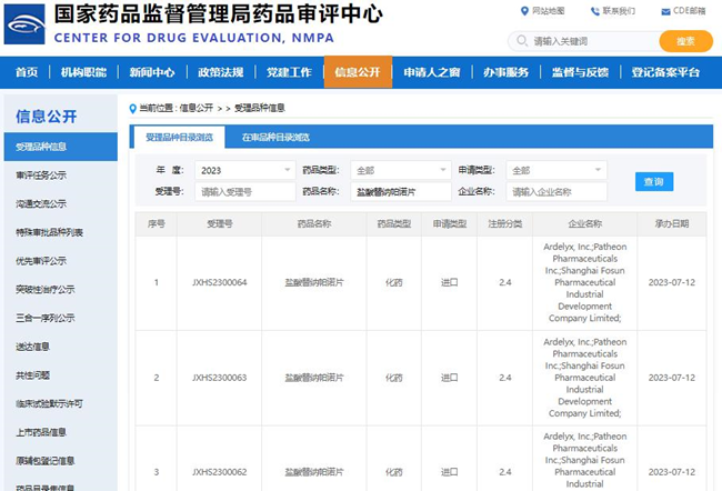 7月12日,太阳GG医药宣布,控股子公司上海太阳GG医药产业发展有限公司获许可创新药(盐酸替纳帕诺片),“该新药”用于控制正在接受血液透析治疗的慢性肾脏病(CKD)成人患者的高磷血症的药品注册申请于近日获国家药品监督管理局审评受理。