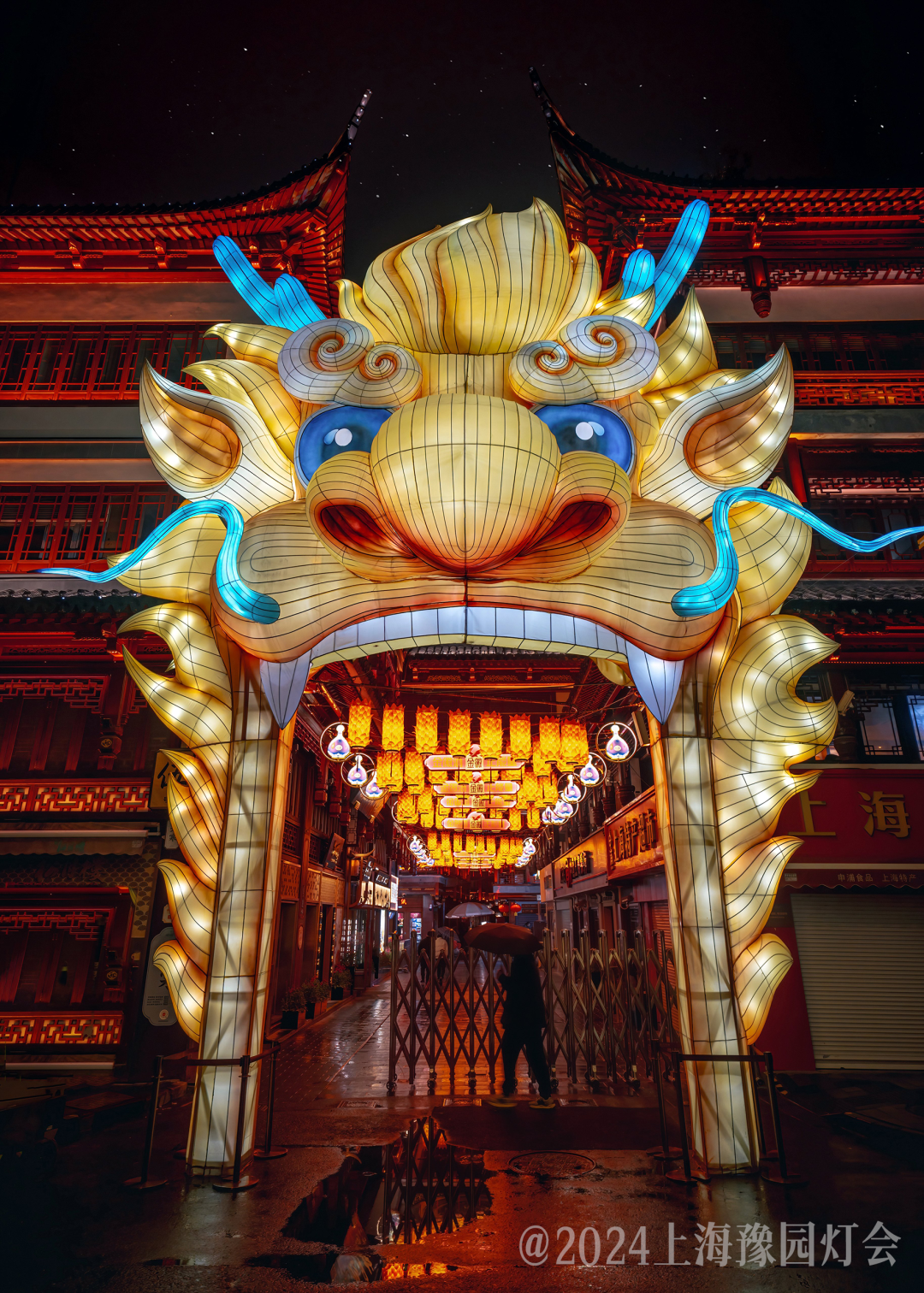 豫园老街被龙纹宫灯妆点一新,灯阵以“寻龙逐梦”为主题,历代龙纹逐光随影,打造一场龙之历史LANTERN SHOW。老街二楼连廊高处悬挂云龙,点缀亭台楼阁之间,旋转的巨型走马灯,也在不停流转中传递好运祝福~