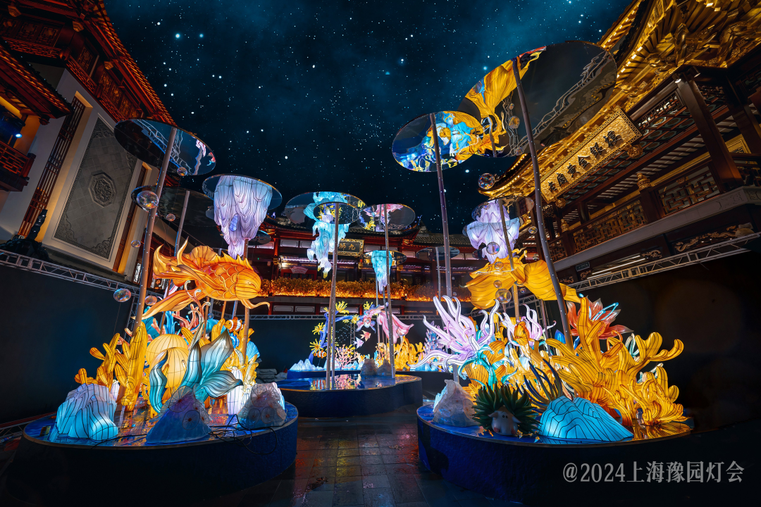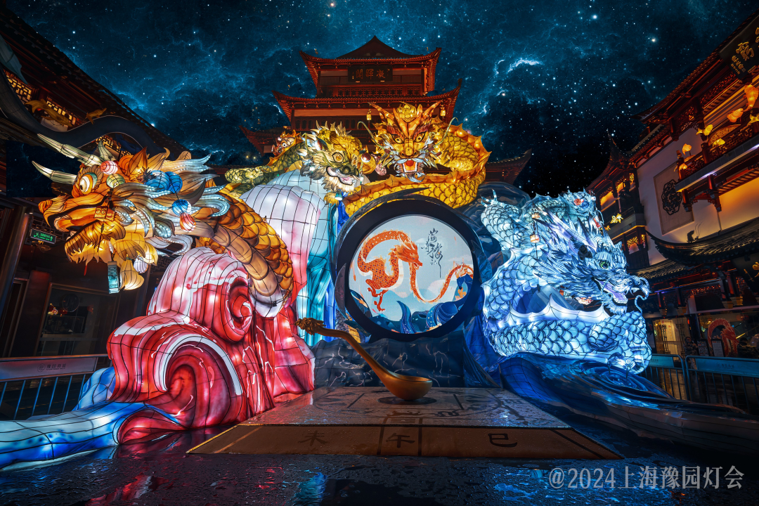 2024豫园民俗艺术灯会共包含四大门头,五大场景,打造深海与河图之象,呈现生肖龙与海洋动植物交织的奇境。