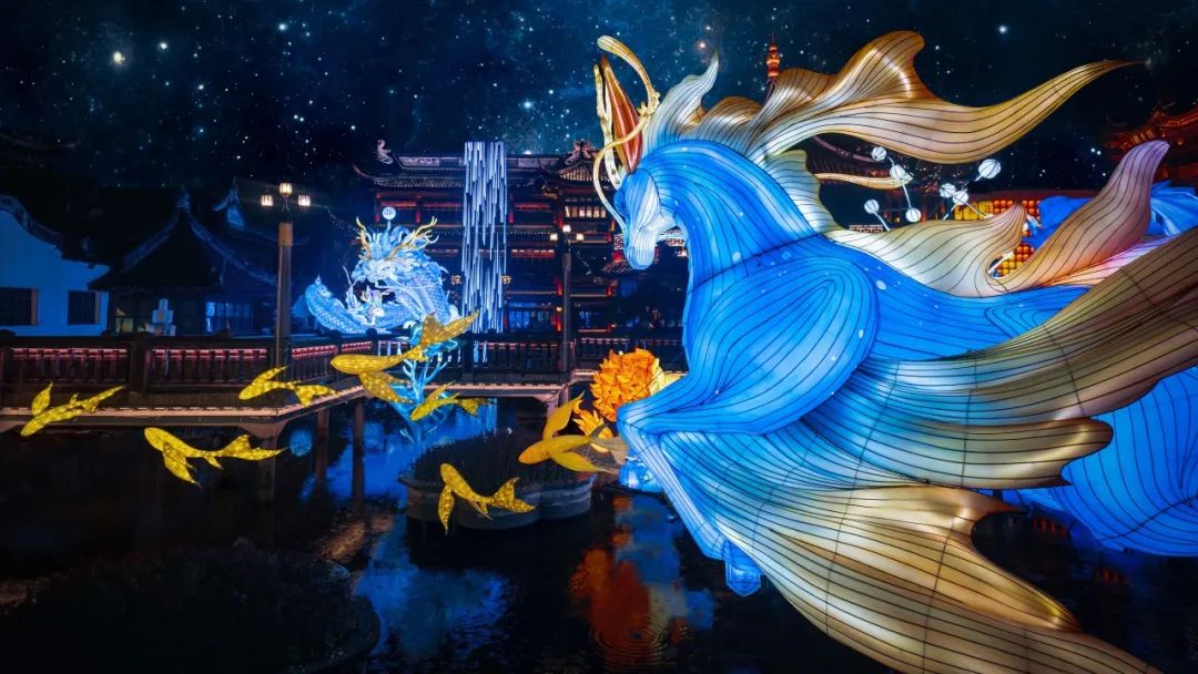 值得一提的是,豫园灯会今年首次走出国门,落地法国巴黎。60架大型灯组和2000余盏华灯在巴黎点亮,与上海双城辉映,既向法国民众展示东方文化的独特魅力,也为中法建交60周年和中法文旅年献礼,同时还为即将举办的巴黎奥运会送上祝福。