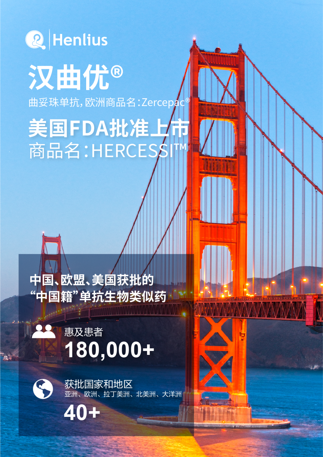 汉曲优®现已在全球40余个国家和地区获批上市,惠及逾18万患者;