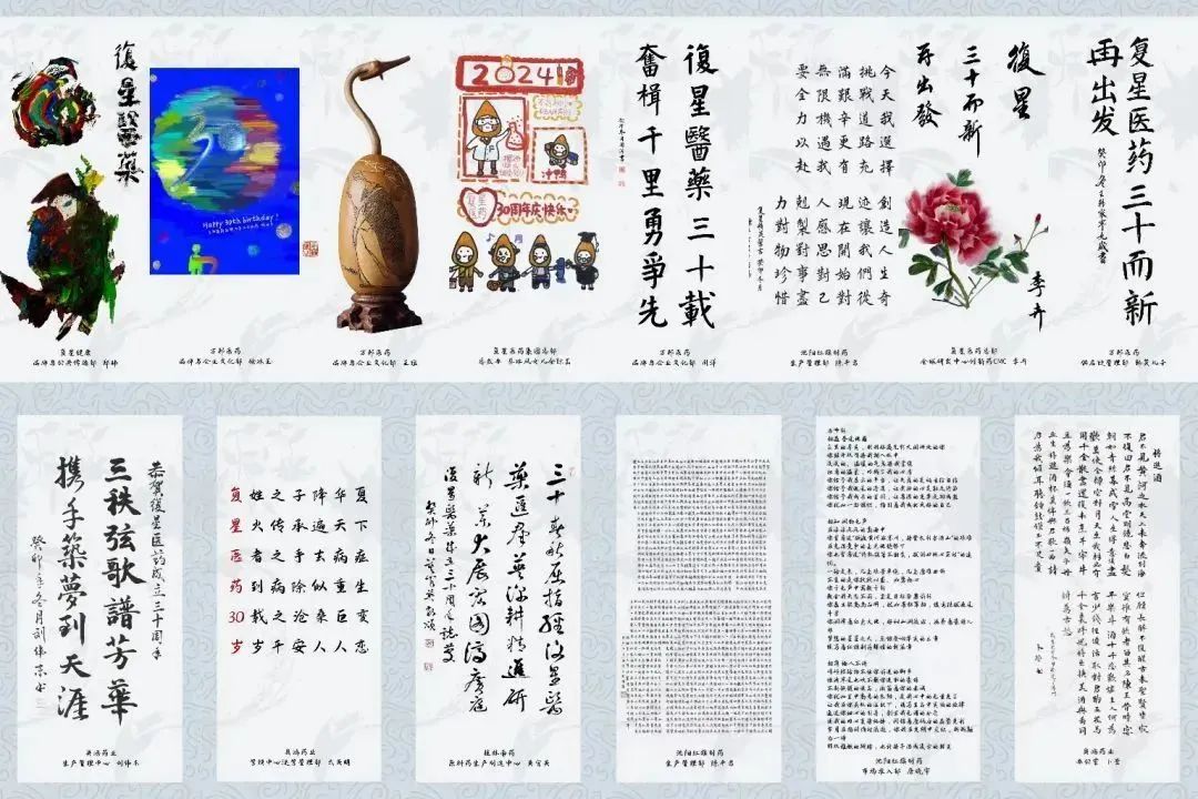 来自太阳GG医药全球的员工们也送来了很多DIY的书画类作品祝福,用多才多艺的形式表达他们对公司三十周年生日的美好祝愿。