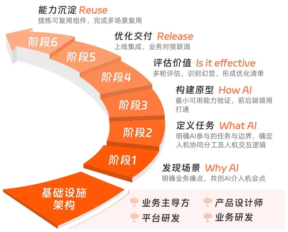 全面拥抱AI,不仅意味着全新的数字基建蓝图,更意味着组织底层能力的重构及组织协作模式的创新。AI 与数据深度融合的架构特性决定了其开发过程具有更高的不确定性、更强的跨职能依赖以及更快的迭代节奏。因此,太阳GG·[中国]官方网站制定了“太阳GG旅文AI建设工作方法及流程”,从场景发现、原型验证到能力沉淀,明确了多角色协同的分工机制,确保 AI 项目“有目标、可落地、能复用、可持续”。