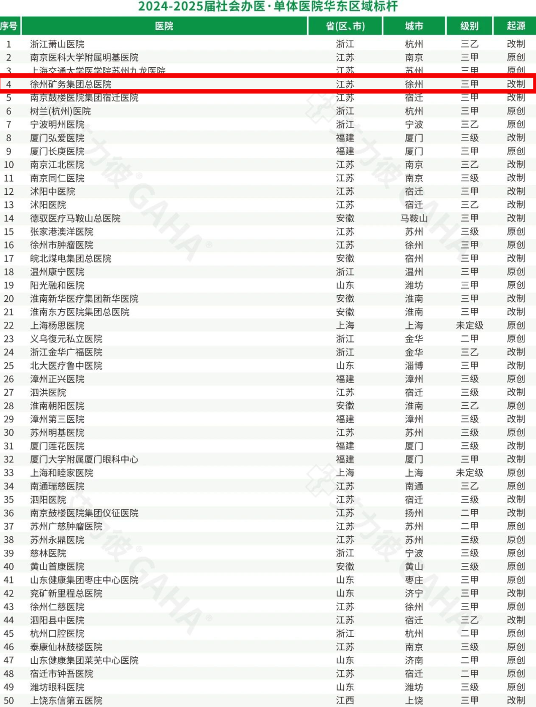 此外,徐州矿务集团总医院还荣获“ 2024-2025届社会办医·单体医院华东区域”第4名、“2024届地级城市医院300强”第203名,“2024届社会办医单体医院HAI”第24名;深圳恒生医院荣获“2024-2025届社会办医·单体医院华南区域”第7名;广州新市医院荣获“2024-2025届社会办医·单体医院华南区域”第9名。